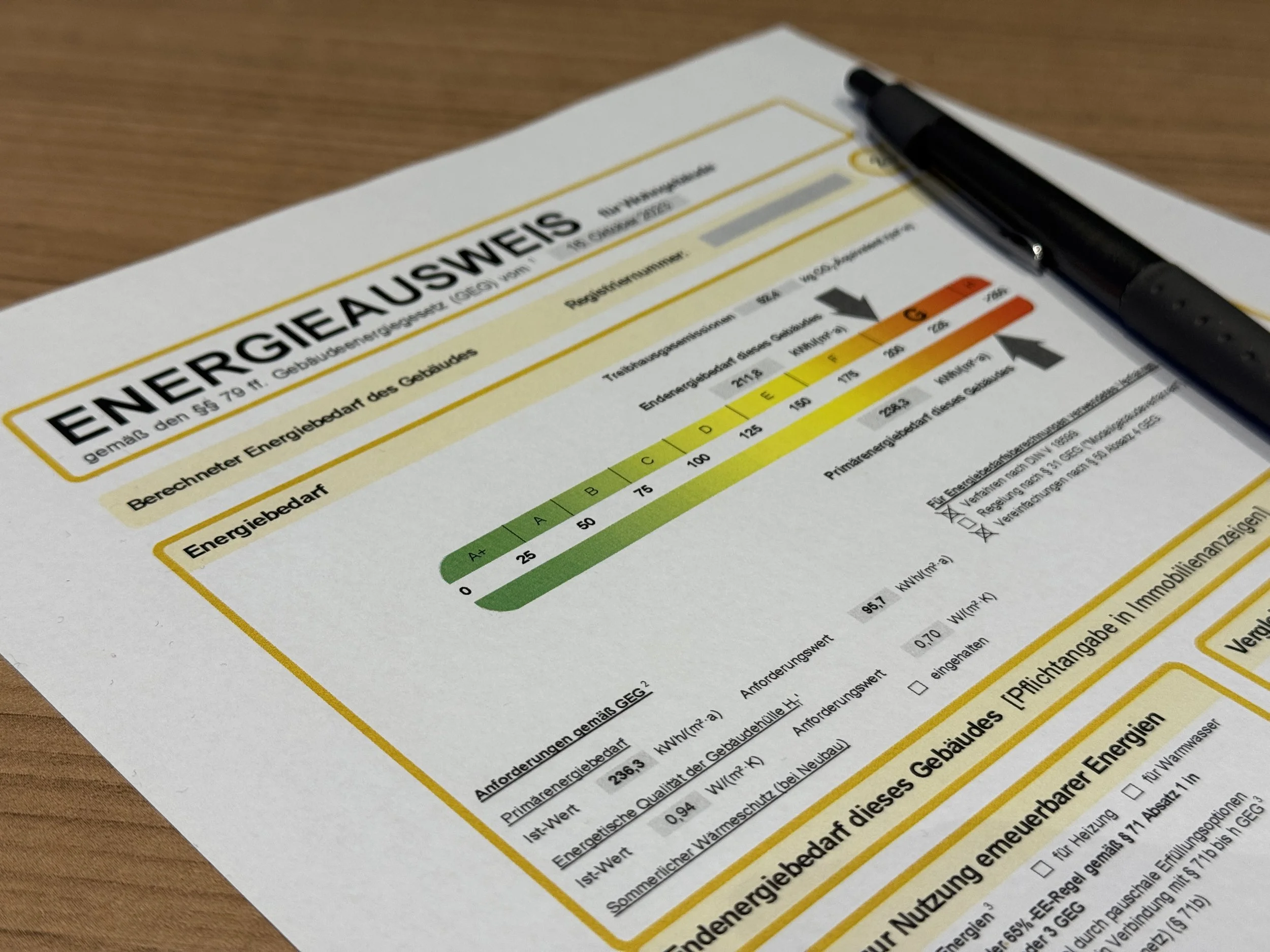 Der Energieausweis schafft eine transparente Informationsgrundlage über den energetischen Zustand eines Gebäudes und ist unter anderem bei Verkauf, Vermietung oder Neubau gesetzlich vorgeschrieben. Der Ausweis bewertet den Energiebedarf oder den tatsächlichen Energieverbrauch eines Hauses und ordnet es in eine Energieeffizienzklasse von A+ bis H ein. Je nach Gebäudeart und Datenlage erstelle ich entweder ein Bedarfsausweis (auf Basis technischer Gebäudedaten) oder ein Verbrauchsausweis (auf Basis realer Verbrauchswerte) für Ihr Wohngebäude gemäß den gesetzlichen Vorgaben.